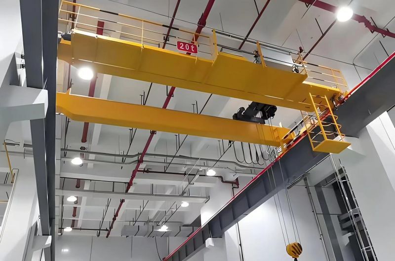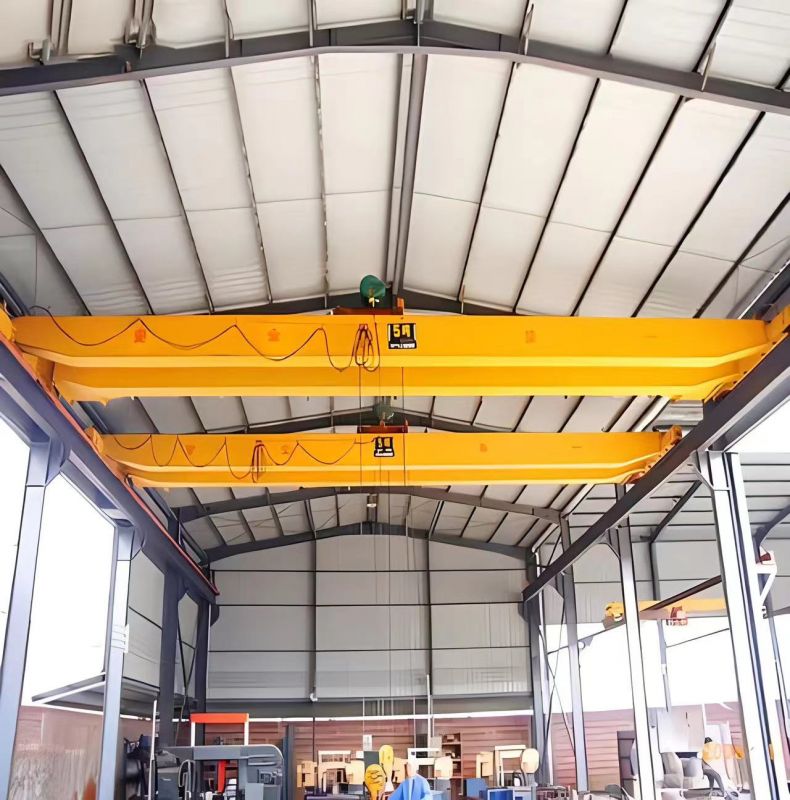 雙梁橋式起重機的安全檢查為了保證橋式起重機的安全運行,在起重機運行期間需進行一些安全常規檢查,檢查項目及要點如下: ?。?) 起升高度限位器、行程限位開關及各聯鎖機構性能正常,安全可靠?! 。?) 各主要零部件符合安全要求:開口增大小于原尺寸的15%,扭轉變形小于10%;板鉤襯套磨損小于原尺寸的50%,板鉤心軸磨損小于5%,無剝落、毛刺、焊補。吊鉤掛架及滑輪無明顯缺陷。鋼絲繩表面鋼絲磨損、腐蝕量小于鋼絲直徑的40%,斷絲在一個捻距內小于總絲數的10%,無斷頭,無明顯變細,無芯部脫出、死角扭擰、擠壓變形、退火、燒損現象。鋼絲繩端部連接及固定的卡子、壓板、鍥塊連接完好,無松動,壓板不少于2個,卡子數量不少于3個。卷筒無裂紋,連接、固定無松動;筒壁磨損小于原壁厚的20%;安全卷不少于2圈,卷筒與鋼絲繩直徑比例符合要求。平衡輪固定完好,鋼絲繩應符合的要求。制動器無裂紋,無松動,無嚴重磨損,制動間隙兩側相等尺寸合適,有足夠的制動力,制動帶磨損小于原厚度的50%。  通過對雙梁橋式起重機的安全常規檢查,對杜絕人身事故,減少設備事故,提高設備運轉率,降低檢修費用等均起到了顯著作用。